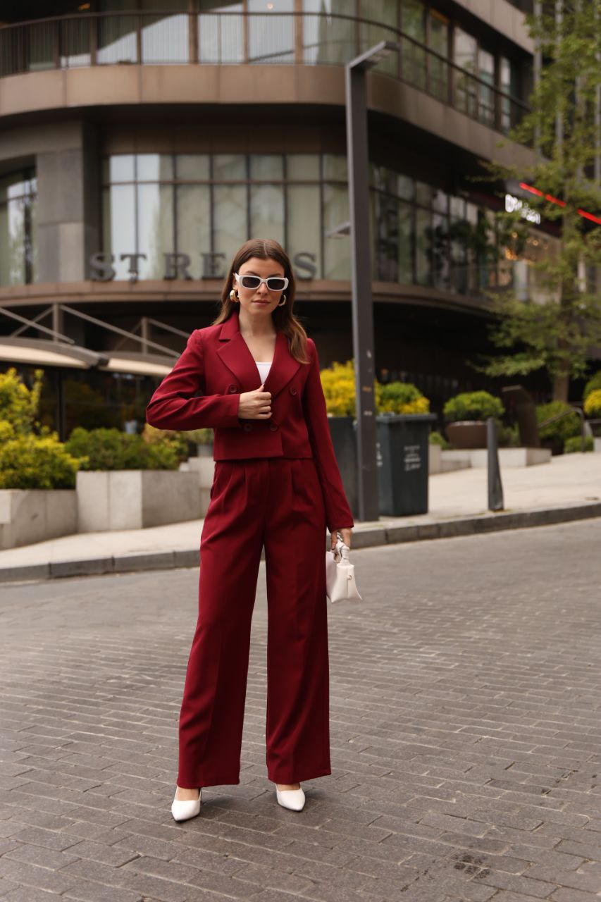 SuitLegacy Burgundy Cropped Double-Breasted Women Suit – Two Piece Set